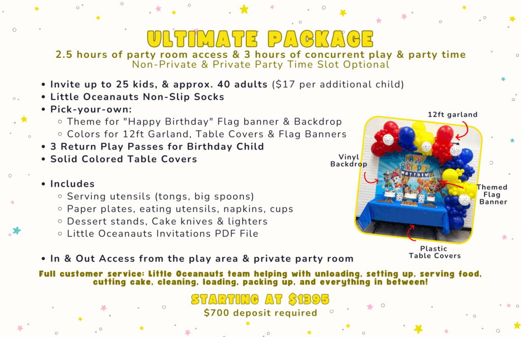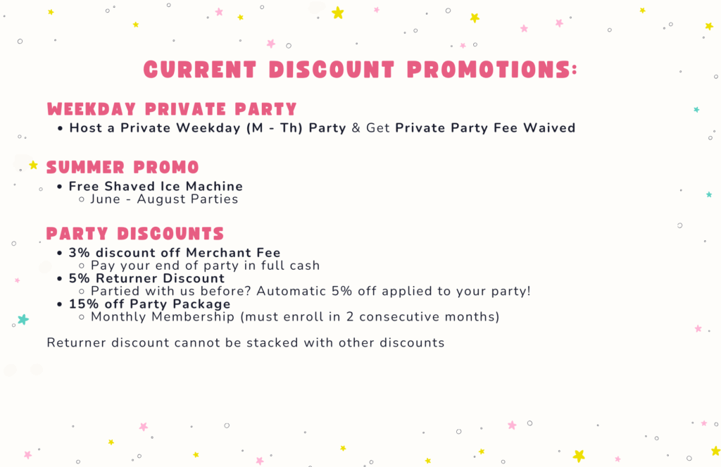 Private party (Full private access of Play Area & Party room) options offered only after 4:00PM each day.