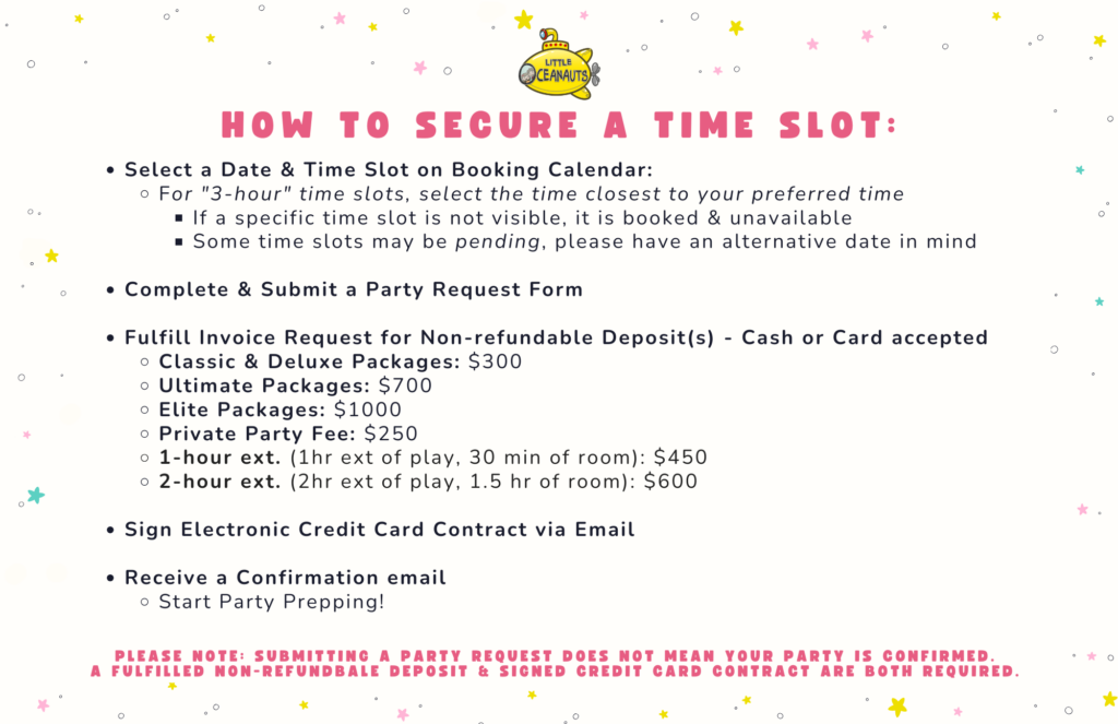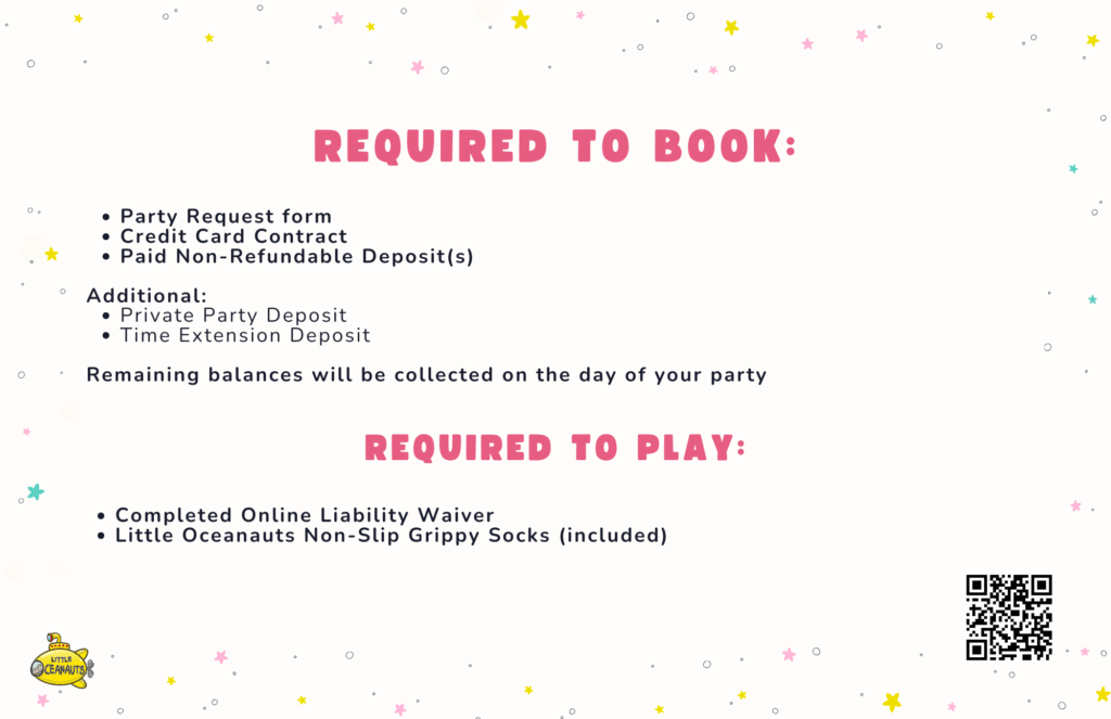 Disclaimer: Booking a party with Little Oceanauts does not guarantee securing a booking with our vendors. Our vendors recommend at least two months advance notice in order to accommodate your request.